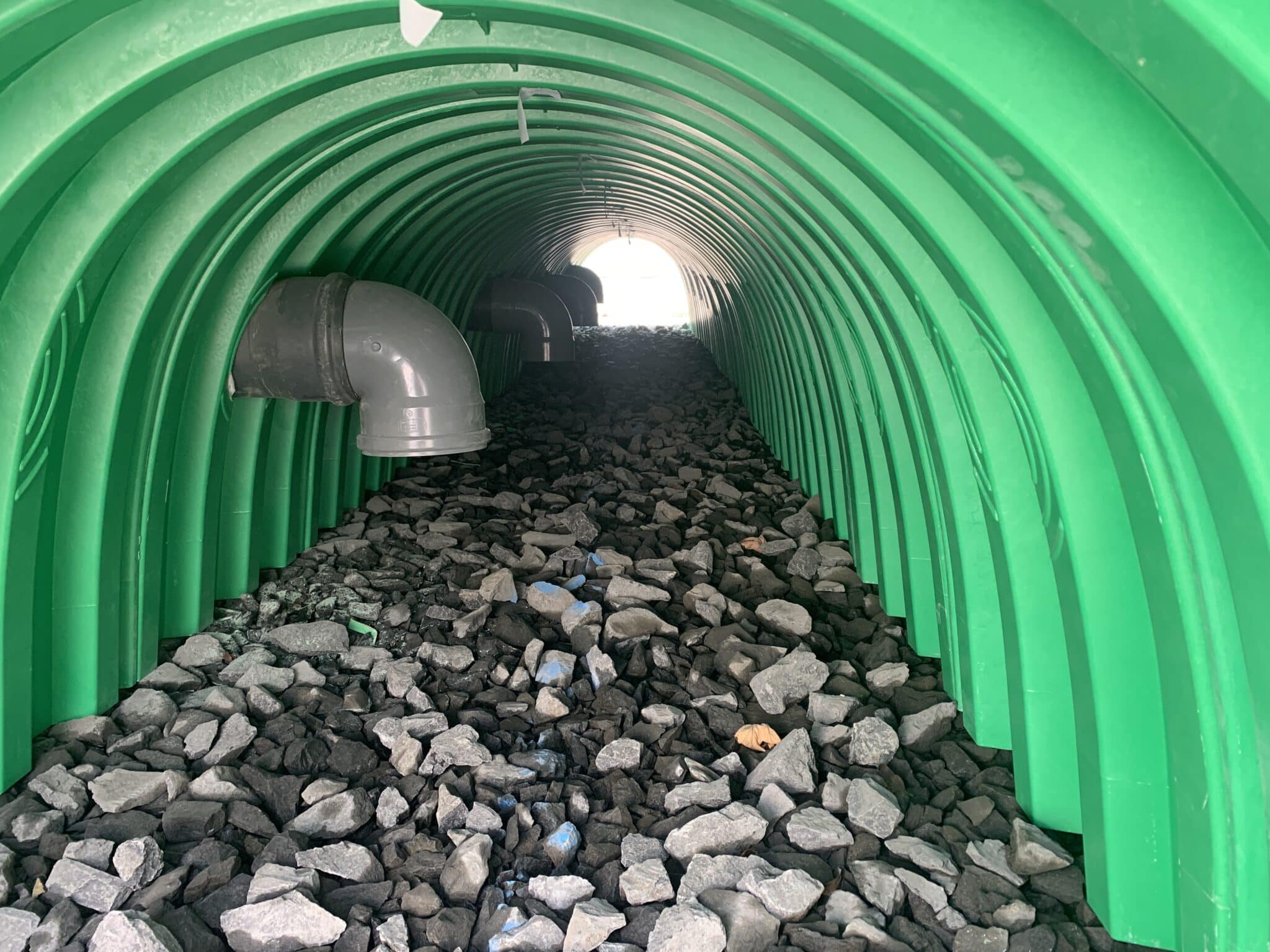 Les arches TRITON sont réalisées à partir de polyester renforcé fibre de verre (PRV) à base de résine végétale.