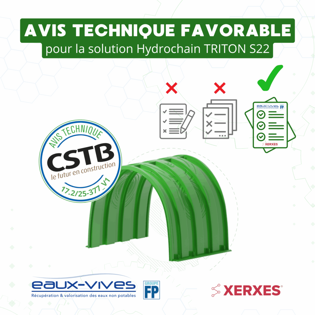 En effet, le CSTB a délivré un Avis Technique favorable pour nos bassins de rétention EP Hydrochain TRITON S22.
